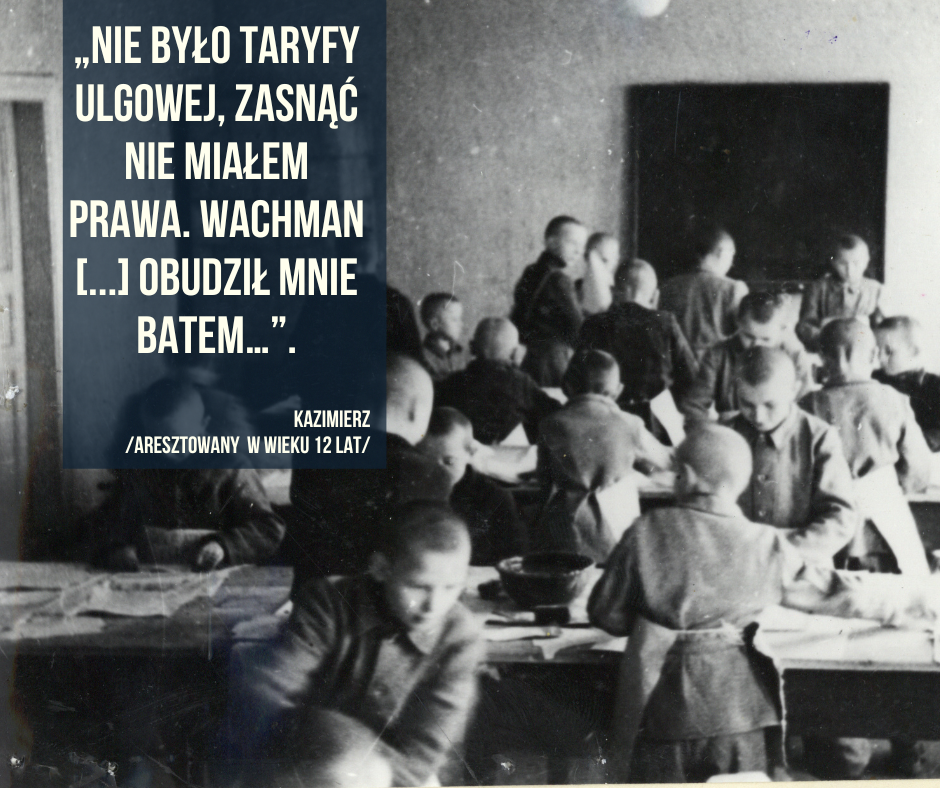 Przeczytaj informacje o Kaziku, który trafił za działalność przeciwko okupantowi Polski do obozu dziecięcego w Łodzi.