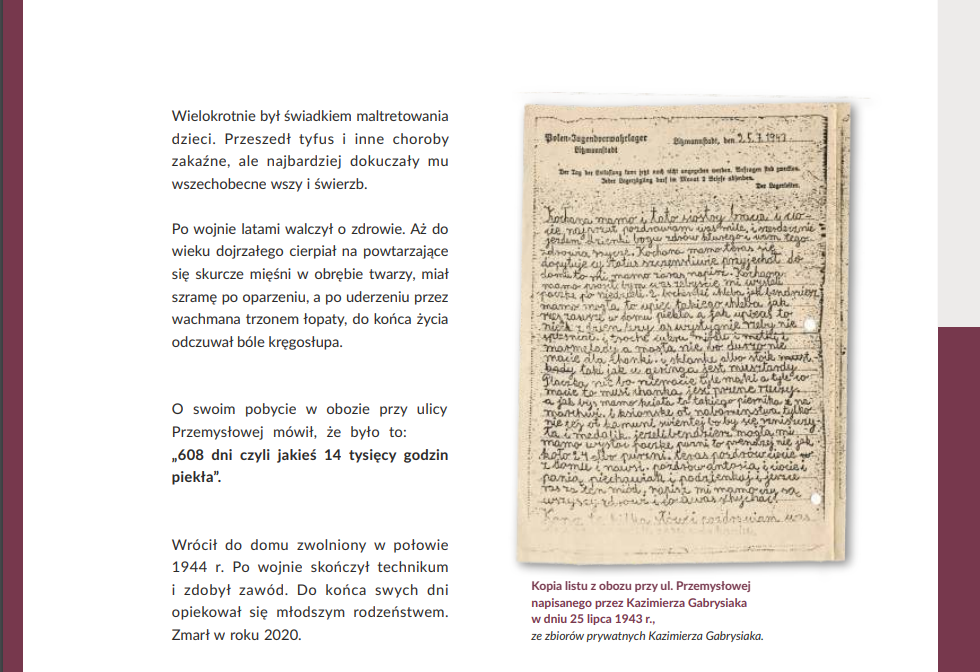 - Poznam historię polskich rodzin, których dzieci były więźniami obozu na Przemysłowej w Łodzi w okresie II wojny światowej,
